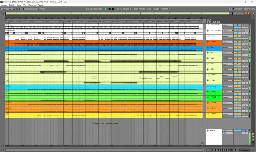 Secuencia Multitrack de "Bendito Seas Señor" por JC Música