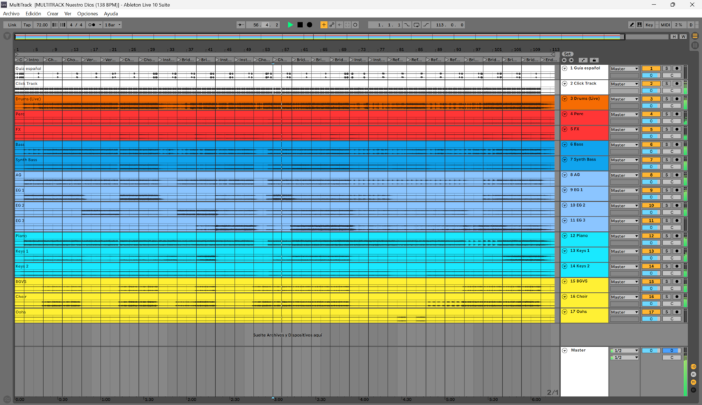 Secuencia Multitrack de "Nuestro Dios" de Montesanto producido y mezclado por JC Música