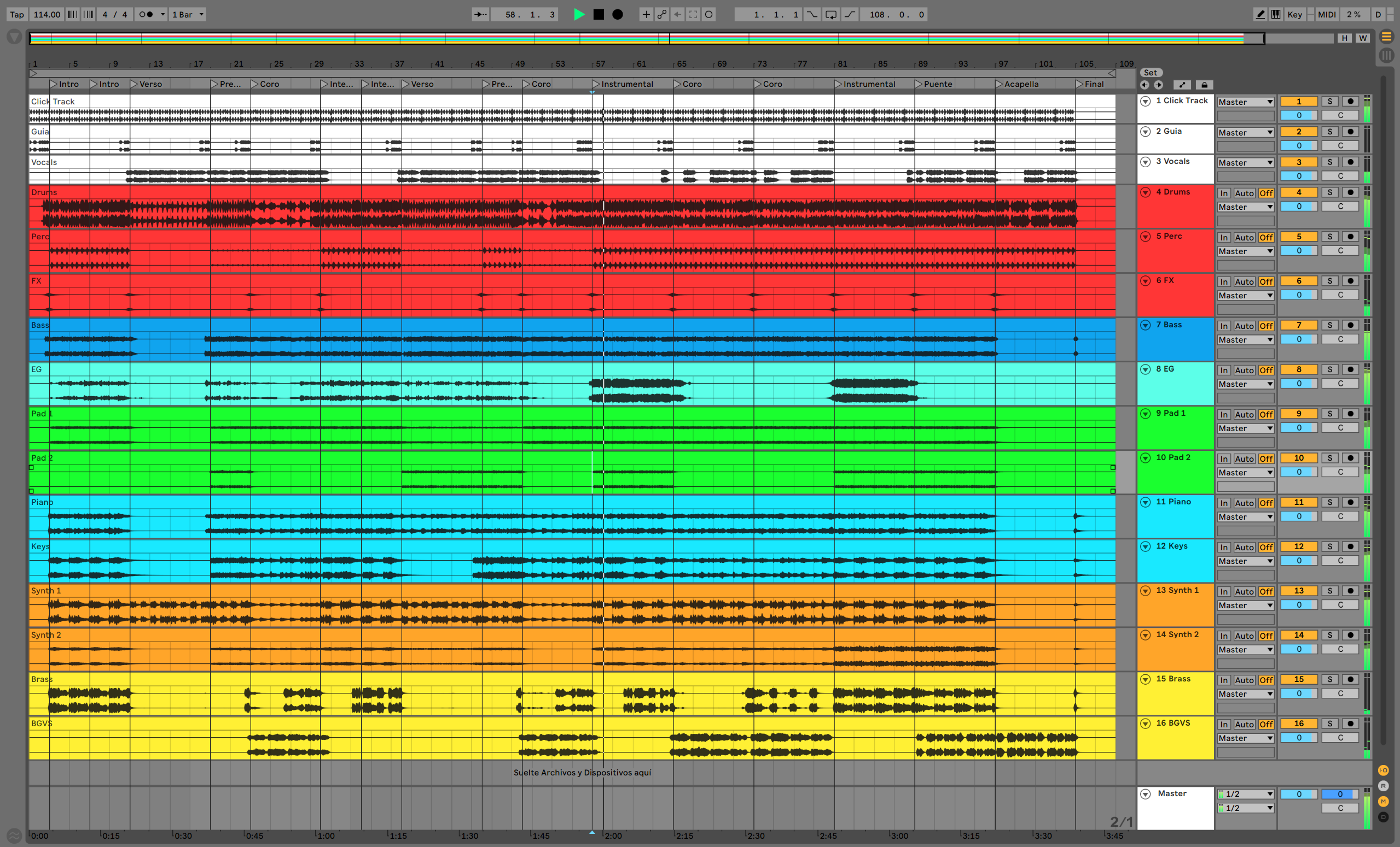Secuencia Multitrack de "Venid y Adoremos (Synth Cover)" de River Church producido y mezclado por JC Música.